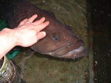 | *長い間(28年間)、お客様皆様より可愛がっていただいた『クエの花子ちゃん』が2004年8月11日、天に旅立ちました。『長い間、可愛がっていただきまして、ありがとうございました!』 2004年4月に入った、子クエが優しかった初代花子ちゃんの元で可愛がられ修行を積み、見よう見真似で頑張っておりますので、どうか初代花子ちゃん同様に可愛がって下さいませ。 ・・・2018年3月になり『二代目クエの花子ちゃん』、体重も推定13キロ以上に成長し、最近はとってもサービス精神旺盛になり自分からすすんでお客様に頭を撫でてもらい、記念に写真を撮ってもらっています。時々、水面から顔を出して、あたりの様子を見る仕草も小さかった頃のままで可愛いです。早いもので今年で14年目になりました。カメラ目線が得意です(笑) 心を癒してくれますよ。 |